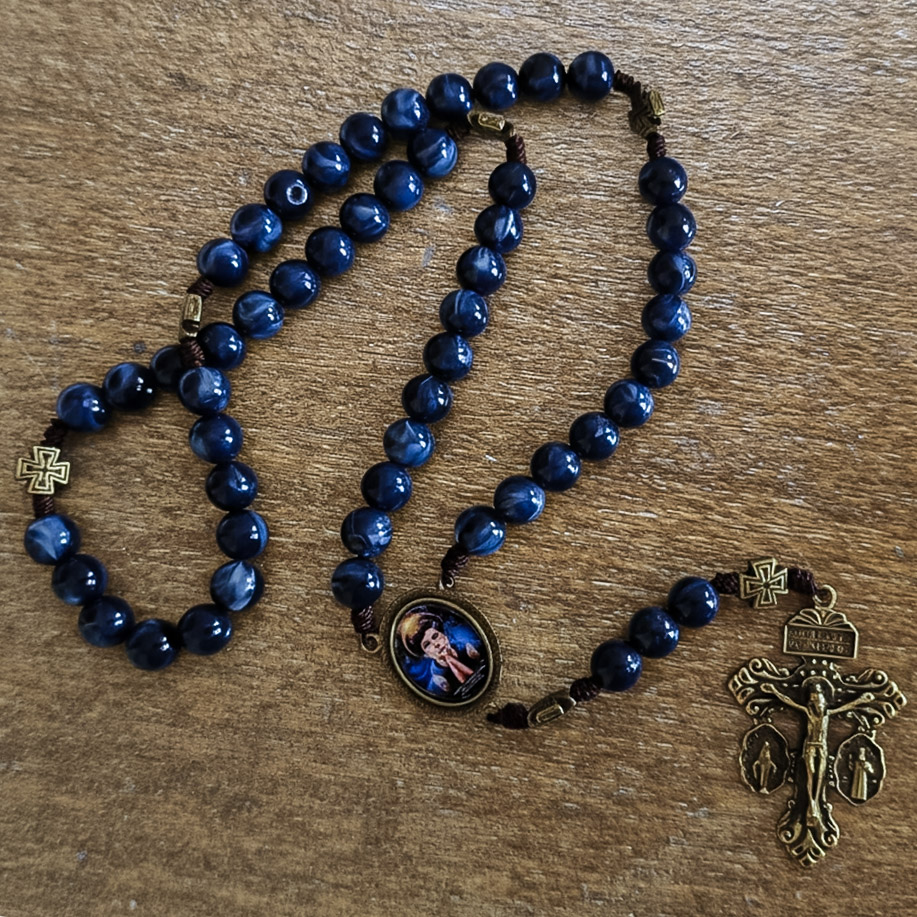 Este belíssimo terço é uma peça especial de devoção, inspirada na fé e proteção de São José com a contemplação dos misterios do santo rosário em seus pai nossos.