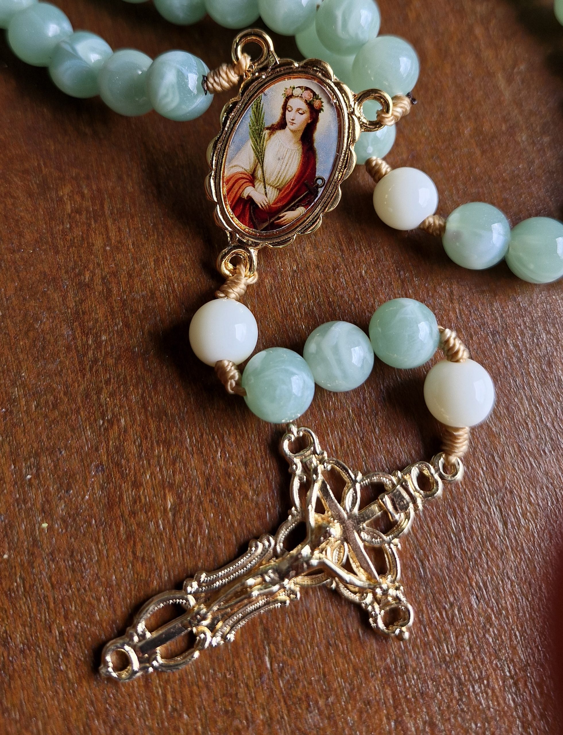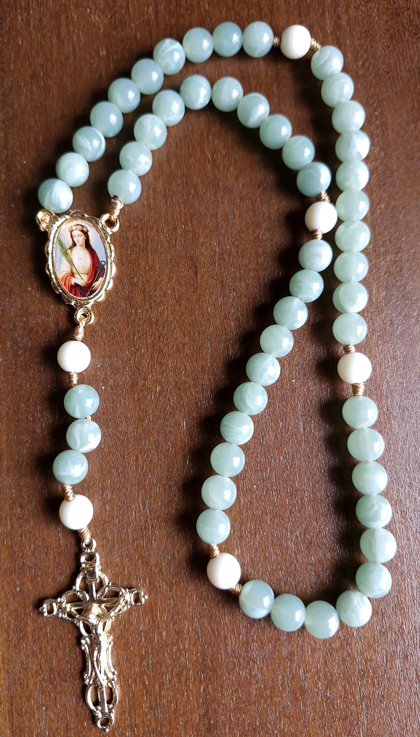 ✨ Terço de Santa Filomena – Dourado com Contas de Resina Verde ✨