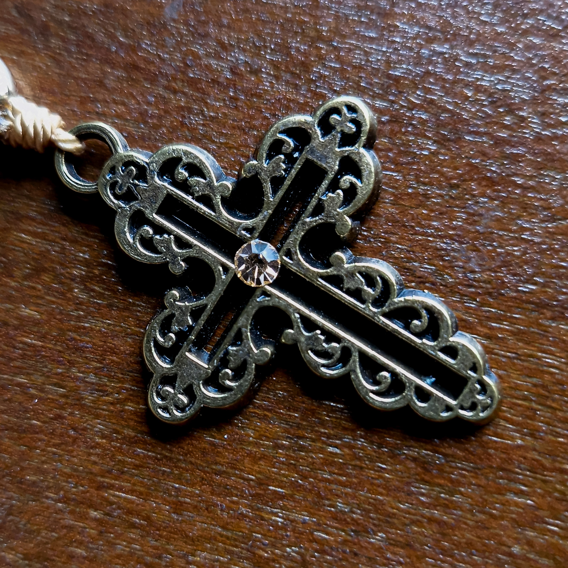 ✔️ Cruz em filigrana vintage com strass central (Coração de Jesus)