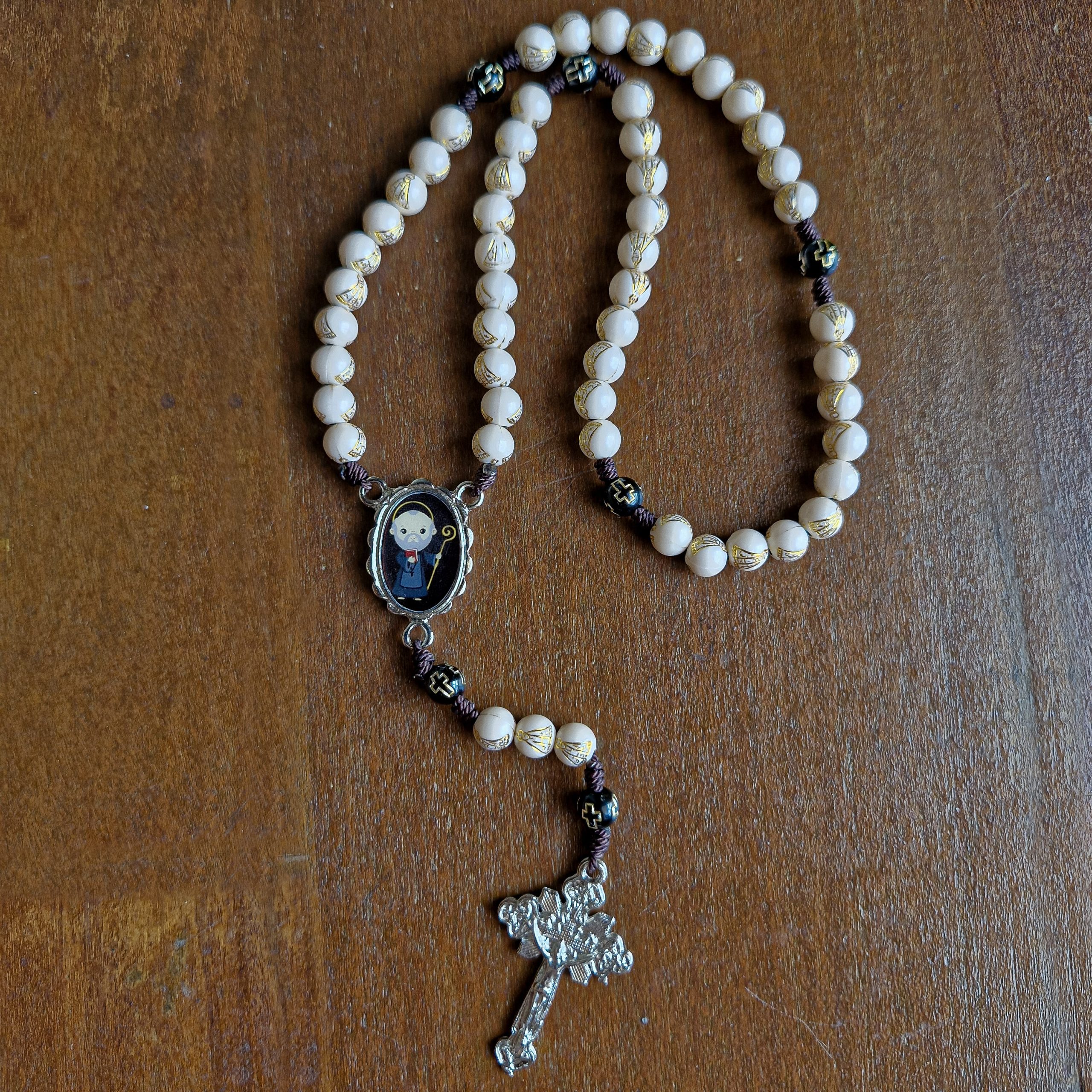 O Terço é composto por uma corrente com contas, crucifixo e medalha, divididos da seguinte forma:
